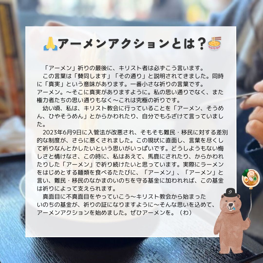 1月23日情報 賛同者の皆さま 3件おしらせします。 ★①1/26「殺傷武器輸出解禁に反対を!」立憲民主党の議員を中心にロビーイング ★②1/29「経済安保版秘密保護法案」の国会提出に反対する院内集会 ★③アーメンアクション始まる! ~~~~~~~~~~~~~~~~ 平和を実現するキリスト者ネット http://cpnet.bona.jp 〒112-0002 文京区小石川2-17-41 富坂キリスト教センター2号館 304号室 e:mail:cpnet@mica.dti.ne.jp> ℡&Fax:03-3813-2885 ~~~~~~~~~~~~~~~~ ★①1/26「殺傷武器輸出解禁に反対を!」立憲民主党の議員を中心にロビーイング 以下のようにロビーイングが呼びかけられています。情報を転送させていただきます。 合掌 武田隆雄 拝 以下転送メール 「殺傷武器輸出解禁に反対を!立憲民主党の議員を中心にロビーイングを 行います」 日時;2024年1月26日(金)14時~ 場所:衆議院第2議員会館1F(に集合後、衆第1、第2.参議院と3手に別れて行いま す) 呼びかけ:ふぇみん婦人民主クラブ:渋谷区神宮前3-31-18 TEL 03-3402-3244 STOP大軍拡アクション TEL 090-6185-4407 STOP改憲・北区の会 TEL 090-1266-8645 ・・・ 立憲議員3役、公明3役、実務者の自公筆頭幹事2人 衆院:安全保障委員会メンバー(立 憲と共産) 参院の外交防衛委員会メンバー(立憲と共産)ほか、れいわ・福島党首・沖縄の風 その他、立憲リベラル議員21人 を訪問予定です -- 大束愛子 <aiko@jca.apc.org> ★②1/29「経済安保版秘密保護法案」の国会提出に反対する院内集会 「経済安保版秘密保護法案」の国会提出に反対する 1.29院内集会へ https://kojiskojis.hatenablog.com/entry/2024/01/12/180439 東京の杉原浩司(武器取引反対ネットワーク:NAJAT/経済安保法に異議あり キャンペーン)です。[転送・転載歓迎/重複失礼] 高市早苗経済安保担当相の肝いりで準備されてきた「秘密保護法の大改悪」案が、いよいよ国会に提出されようとしています。公務員中心だった対象を一挙に民間人に拡大する一方で、秘密保護法に存在する国会の「情報監視審査会」のような仕組みすら無いまま、武器の国際共同開発も加速させる、秘密保護法よりも悪質な法案です。 市民と立憲野党の連携によって葬り去ることが必要です。悪法の危険極まりない本質を共有するための院内集会にぜひご参加ください。オンライン中継も行います(録画配信も予定)ので遠方の方はご視聴を! [社説]適性評価拡大 人権侵害を懸念する(1月23日、東京) https://www.tokyo-np.co.jp/article/304528?rct=editorial [社説]適性評価制度 弊害の防止が大前提だ(1月19日、朝日) https://www.asahi.com/articles/DA3S15841861.html 情報漏洩の罰則は最大懲役10年 「セキュリティ・クリアランス」法案化に向け最終取りまとめ案(1月17日、TBS) https://newsdig.tbs.co.jp/articles/-/947733 [声明] 大川原化工機事件国家賠償訴訟判決を契機に 経済安全保障上の規制の持つ人権侵害の危険性について警告する https://x.gd/28SWl ------------------------------ 「経済安保版秘密保護法案」の国会提出に反対する院内集会 ~セキュリティ・クリアランス(適性評価)の危険な狙い~ 1月29日(月)12時~13時30分 衆議院第2議員会館 多目的会議室(国会議事堂前駅、永田町駅) ※11時30分よりロビーにて通行証配布 <講師> 井原聰さん(東北大学名誉教授) 海渡双葉さん(弁護士) 海渡雄一さん(弁護士) 資料代 500円 ◆ツイキャス中継あり https://twitcasting.tv/keitarou1212 2013年12月に秘密保護法が強行採決されてから10年が過ぎました。多くの市民が懸念した通り、言論空間が萎縮し、平和憲法を蔑ろにする軍備拡大が進みました。日本は「新しい戦前」に突入しているかのようです。 2022年に成立した経済安保法は、経済の国家管理・統制を強め、露骨に中国を仮想敵とする戦時立法です。そして政府は、「秘密」を扱う資格を定めるセキュリティ・クリアランス(適性評価)を制度化する法案を、この通常国会に出そうとしています。秘密保護法制を経済や研究開発の分野に拡大しようというのです。 政府によって恣意的に「秘密」が設定され、大川原化工機事件のような冤罪事件が多発しかねません。セキュリティ・クリアランスの対象者は、秘密保護法の何倍、何十倍にもなるでしょう。身辺調査によりプライバシー権が侵され、最高10年の重罰を背景に、自由な言動、経済活動、研究が封じられ、人々が否応なく戦争に動員されていくことになります。危険な「経済安保版秘密保護法案」の国会提出を阻止するために、その問題点を共有します。 【主催】 経済安保法に異議ありキャンペーン https://keizaianpoigi.wixsite.com/com-com 秘密保護法対策弁護団 〔連絡先〕 090-6185-4407(杉原) 03-3341-3133(東京共同法律事務所・海渡) ★③アーメンアクション始まる! いつもありがとうございます。 マイノリティ宣教センターが協賛しています「難民移民なかまのいのちを守る緊急基金」が第二期目の申請受付と給付を準備しています。 広く基金運動を知っていただき、若い方々も、また教会とは違う場で活動している方にも参加しやすい方法の一つとして、アーメンアクション を考えました。 本日からスタートしています。 いくつか