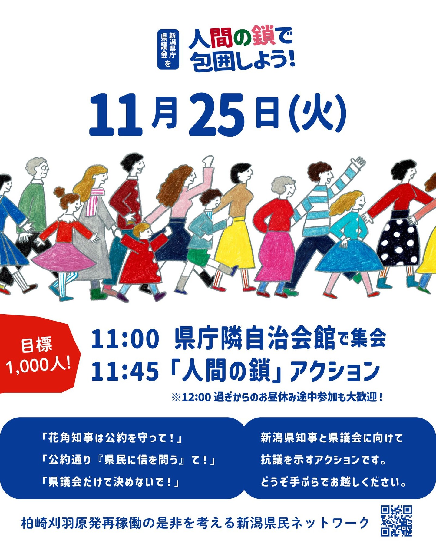 ![]() 11月27日情報 賛同者の皆様 5件お知らせします ★①11/29 再処理定例デモ ★②12/3 さようなら原発オンライン学習会 ★③12/4 高市発言撤回!官邸前 ★④12/11 南京大虐殺証言集会 ★⑤12/12 キャロリング・フォー・ピース2025 ~~~~~~~~~~~~~~~~ 平和を実現するキリスト者ネット http://cpnet.bona.jp 〒112-0002 文京区小石川2-17-41 富坂キリスト教センター2号館 304号室 e:mail:cpnet@mica.dti.ne.jp> ℡&Fax:03-3813-2885 ~~~~~~~~~~~~~~~~ 添付資料 再処理止めたい定例デモin銀座ちらし 南京大虐殺から88年証言集会 キャロリングちらし ★①11/29 再処理定例デモ 再処理止めたい!首都圏市民のつどい主催の定例デモです。 お時間がありましたら、ぜひご参加ください。 井上 拝 ★②12/3 さようなら原発オンライン学習会 第33回オンライン学習会「消える原発事故被災地の風景〜フォトジャーナリストが見続けた福島原発事故の15年」 お 話:豊田直巳さん(フォトジャーナリスト) 日 時:12月3日(水)18:00~ 内 容:福島原発事故からまもなく15年。フォトジャーナリストの豊田さんは、2011年の東日本大震災・原発事故後、福島を取材し続け、変わりゆく被災地の風景と、そこで生きる人々の思いを記録してきました。放射能汚染の深刻さや、国が進める「復興」と避難者の思いのズレ、そして記憶を持たない世代が増える現実。 事故直後からの15年間を収めた多数の写真を手がかりに、今なお続く原子力緊急事態のもとで私たちが向き合うべきフクシマ課題をお話しいただきます。 主 催 「さようなら原発」一千万署名 市民の会 落合恵子 鎌田慧 古今亭菊千代 佐高信 澤地久枝 藤本泰成 武藤類子 連絡先 さようなら原発1000万人アクション実行委員会 東京都千代田区神田駿河台3-2-11 連合会館1階 原水禁気付 TEL.03-5289-8224 Email office@peace-forum.top http://sayonara-nukes.org ←ホームページは「さようなら原発」で検索 第33回さようなら原発オンライン学習会_チラシ_page-0001.jpg ★③12/4 高市発言撤回!官邸前 『高市発言撤回!日中戦争を煽るな!12・4官邸前緊急行動』( #1204官邸前緊急行動 ) 12/4(木)19:00~ 首相官邸前 各種共有ボタンで拡散を!詳細は→https://kyujokowasuna.com/?p=4498 11月7日の衆院予算委員会での高市首相の「台湾有事・存立危機事態」発言は、日本と中国の関係を極度に緊張させつつあります。高市首相は、いたずらに両国の対立と緊張、戦争をあおるのではなく、この発言を直ちに撤回し、平和的な共存の道を探るべきです。 日時:12月4日(木曜日)19:00? 場所:首相官邸前 呼びかけ:憲法9条を壊すな!実行委員会 第1回の11・25緊急行動呼びかけ団体は以下です。ひきつづき呼びかけ団体を募集します。kenpo@galaxy.ocn.ne.jp または03-3221-4668へご連絡を。 憲法9条を壊すな!実行委員会 許すな!憲法改悪・市民連絡会 憲法を生かす会 安保法制の廃止をめざす中野アピール実行委員会 平和をつくり出す宗教者ネット 日本山妙法寺 基地のない沖縄をめざす宗教者の集い 日韓民衆連帯全国ネットワーク 村山首相談話の会 STOP改憲・北区の会 田端・中里九条の会 日本戦没学生記念会(わだつみ会) 共謀罪No!実行委員会 「秘密保護法」廃止へ!実行委員会 研究所テオリア 平和をつくる大和市民の会 「憲法」を愛する女性ネット 日韓和解と平和プラットフォーム 戦争させない千代田の会 ふぇみん婦人民主クラブ 全労協石油退職者ユニオン 憲法九条やまとの会 平和を実現するキリスト者ネット 平和といのち・イグナチオ9条の会 戦争準備に反対する首都圏反基地交流会 医療と福祉の戦争協力に反対する連絡会議 千住九条の会 戦争させない9条壊すな品川総がかり行動実行委員会 なの花会 ふじさわ・九条の会 「止めよう!辺野古埋め立て」国会包囲実行委員会 フェミブリッジ・東京 メディアネットちきゅう座 東京・地域ネットワーク 憲法骨抜きNO!ねりま 仝譴笋咾蕾㌃ もあい練馬 (首都圏以外のみなさん) とめよう改憲!おおさかネットワーク 赤とんぼの会(大分県)有志 ゆいま~る?とやま沖縄つなぐ会 PeaceActionうえだ(長野県) 戦争させない、9条壊すな!釧路行動実行委員会 不戦へのネットワーク(愛知県)私たちでつくる東アジアの平和(大分県) 戦争止めよう!沖縄・西日本ネットワーク 共同代表 具志堅隆松、呉羽真弓、高井弘之、海北由希子 許すな!「日の丸・君が代」強制、止めよう!改憲と教育破壊 全国ネットワーク(ひのきみ全国ネットワーク) ピースリンク広島・呉・岩国 平和を求め軍拡を許さないおんなたちの会・熊本 平和を求め軍拡を許さないおんなたちの会・大分 広島瀬戸内新聞 市民自治を創る会(北海道)呉YWCA憲法カフェ(広島) 憲法・教育基本法改悪に反対する市民連絡会おおいた 『週刊金曜日』大分読者会 -- 高田健 <kenpo@galaxy.ocn.ne.jp> 東京都千代田区神田三崎町3-3-3 太陽ビル402市民ネット内 許すな!憲法改悪・市民連絡会 03-3221-4668 Fax03-3221-2558 http://web-saiyuki.net/kenpoh/ 戦争させない・9条壊すな!総がかり行動実行委員会 http://sogakari.com/ 憲法9条を壊すな!実行委員会 http://kyujokowasuna.com/ 九条の会事務局 mag@9jounokai.jp ★