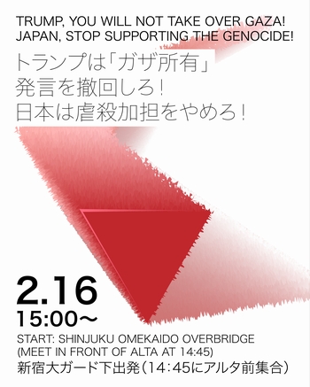 2月10日情報 ![]() 賛同者の皆さま 3件お知らせします。 ★①2/8ソウル大行動 ★②jpメールマガジン025-009 ★③2/16ガザ所有を… 新宿デモ ~~~~~~~~~~~~~~~~ 平和を実現するキリスト者ネット http://cpnet.bona.jp 〒112-0002 文京区小石川2-17-41 富坂キリスト教センター2号館 304号室 e:mail:cpnet@mica.dti.ne.jp> ℡&Fax:03-3813-2885 ~~~~~~~~~~~~~~~~ 添付資料 2025.2.8ソウル行動 対話講演会 ★①2/8ソウル大行動 昨日の2/8ソウル大行動(民プラスから) 渡辺です。 昨日(2/8)ソウルの光化門で第10次「ユン・ソンニョル即刻退陣・ ![]() 社会大改革大行進」が開かれました。日本からは総がかり行動の菱山南帆子さんが参加 し連帯アピールを行っています。 韓国のインターネットニュースサイト「民プラス」の記事を紹介します。 http://www.minplusnews.com/news/articleView.html?idxno=15812 要旨の訳文を添付しました。機械翻訳のうえ渡辺が若干手を入れましたが固有名詞など 不明な点はそのままにしています。 ●3.1独立運動106周年集会のご案内は下記ブログからアクセス ************************************************** 日韓民衆連帯全国ネットワーク(日韓ネット) 東京都台東区上野3-20-8小島ビルSBC4-15 TEL 070-6997-2546 公式ブログ http://nikkan-net.cocolog-nifty.com/ メールアドレス nikkan_net_japan@yahoo.co.jp ************************************************** ★②jpメールマガジン025-009 2025.2.10 jp025-009 正義と平和協議会メール情報 ***jp***jp***jp***jp***jp***jp***jp*** ★★ 第42回正義と平和全国集会 仙台大会の開催が決定しました!★★ 日時 2025年10月11日(土)-13日(月・祝) メイン会場 カトリック元寺小路教会(仙台教区カテドラル) テーマ(仮)「希望は欺かない」―大震災から14年つなぐ思い国籍を超え歩む平和への道― 1. JP通信250号(2025.2月号) 発行しました。 添付1 表紙写真 2.(再送)紙芝居上映と対談講演会 「満州分村移民と部落差別」熊本「 来民開拓団」の悲劇(2025.2.11 京都) 添付2 ***jp***jp***jp***jp***jp***jp*** 1.JP通信250号 発行しました。 添付1 表紙写真 目次 ・「ともに歩む生き方」の途上から シノドス第16回通常総会第2会期報告 西村桃子 ・核兵器も核発電もNO、核のない世界に向けて韓日脱核交流10年の成果と今後の課題を探る ヤン・キソク ・日韓和解と平和プラットフォームの活動 光延一郎 ・連載第16回 もう会えないけど、大切な人の声に耳を傾ける 市田真理 ・まんが 神学生トマス ★ 購読者の方への郵送は来週になります。今しばらくお待ちください。 ★お手にとってお読みになりたい方は、事務局までご連絡ください。 JP通信年間購読(1800円(送料込み)/年)のお申し込みも、事務局までお問い合わせください。 2.(再送)紙芝居上映と対談講演会 「満州分村移民と部落差別」熊本「 来民開拓団」の悲劇(2025.2.11 京都)添付2 ―侵略に利用された差別、重なる加害と被害― 被差別部落の融和事業、農村の満州開拓移民事業の国策が重なった形で、大陸に送り出された「来民開拓団」。 敗戦とともに原住民の襲撃にあい、多くの子どもを含む276人全員(1人だけ証言のため脱出)が自決するに至った全容を、歴史的背景から当事者の証言、資料を丹念に積み重ね、現在までを追い、悲劇の遠因としての国策を厳しく断罪。 ソ連兵への「性接待」で知られている黒川開拓団との関係など貴重な史実をもとに松浦司教さんとエィミー・ツジモトさんにお話をしていただきます。 日 時:・2025年2月11日(祝)14:00~17:00 会 場:河原町カトリック会館 地下2階 大ホール 京都市中京区河原町通三条上る下丸屋町423 紙芝居:「 275人の遺書配達人」(DVD約30分)(来民の中・高生たちが中心になって作成した紙芝居を関西の個性派俳優が朗読したもの) 対談講演: 講 師:松浦悟郎さん(名古屋教区司教 社会司教委員会委員 子どもと女性の権利擁護のためのデスク委員長) 講 師:エィミー・ツジモトさん(国際ジャーナリスト) アメリカ・ワシントン州出身の日系4世。日系移民の歴史や捕虜問題をはじめ現代史に関する記事を多数発表。 ≪共 催≫京都教区カトリック正義と平和協議会 カトリック大阪高松教会管区部落差別人権活動センター ≪問合せ≫☏075-223-3340(京都教区カトリック正義と平和協議会) e-メール seiheikyo@kyoto.catholic.jp -- ***jp***jp***jp***jp***jp***jp***jp***jp***jp** *平和をつくりだす宗教者ネット 「戦争する国」に反対し、脱原発・共謀罪廃止を求める 要請書 (毎月署名できます) http://www.shukyosha9jonowa.org/news/youbou201706_n1.pdf *『憲法改悪を許さない全国署名』 (正義と平和協議会とりまとめの署名用紙はこちらからダウンロードできます) https://www.jccjp.org/wordpress/wp-content/uploads/2022/01/No-kaiken-syomei.pdf *平和、いのち、くらしを壊す 大軍拡、大増税に反対する請願署名 (正義と平和協議会とりまとめの署名用紙はこちらからダウンロードできます) https://www.jccjp.org/wordpress/wp-content/uploads/2023/03/daigunkakuhantai.pdf ***jp***jp***jp***jp***jp***jp***jp***jp***jp** 本メールは配信専用です。お問い合わせは下記までお願いいたします。 日本カトリック正義と平和協議会 Japan Catholic Council for Justice and Peace TEL 03